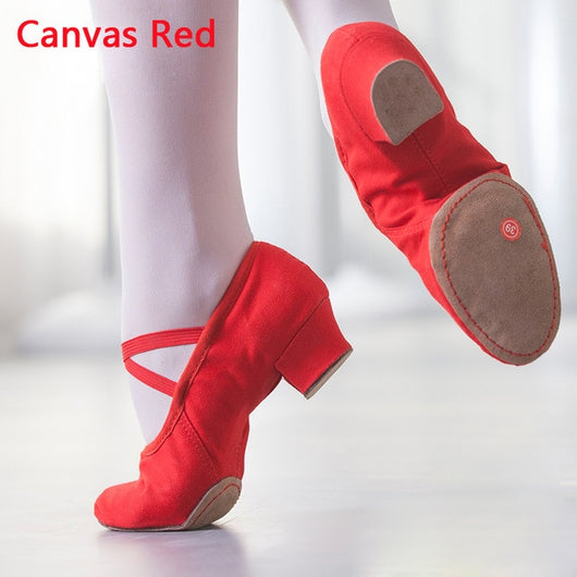 Natural Leather Ballet Dance Shoes For Women Middle Heel Soft Stretch Jazz Salsa Dancing Shoes Sneakers For Girls Yoga Shoes