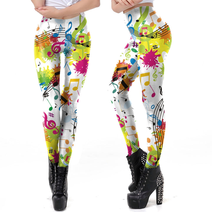 New Colorful Note Sexy Leggings Casual Fitness Leggings Female Skinny Streetwear Clothes Elastic Tight Women Pants