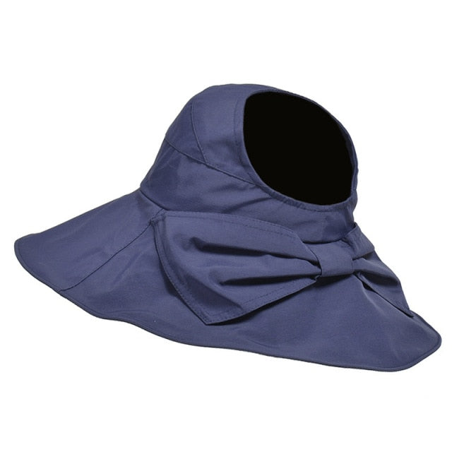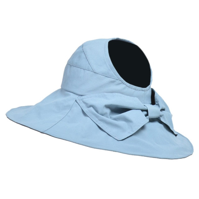 New Fashion Women Summer UV Protection Sun Hat Female Ponytail Bucket Hat With Neck Flap Outdoor Traveling Beach Cap