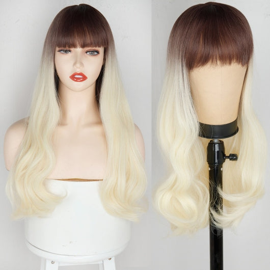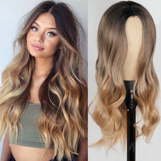 Ombre Brown Blonde Long Wavy Middle Part Hair Wig Cosplay Natural Heat Resistant Synthetic Wig for Women