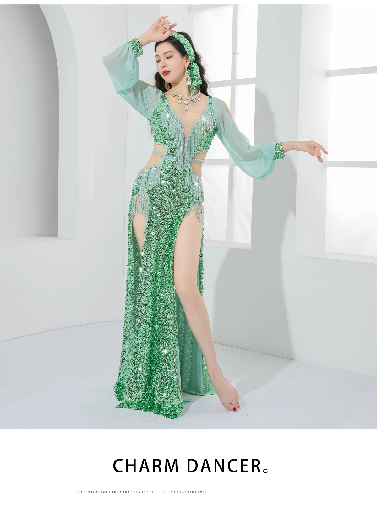 Oriental Dance Competition Clothing Belly Dance Performance Costume for Women Light Luxury Sequin AB Stones Fringe Dress Adult