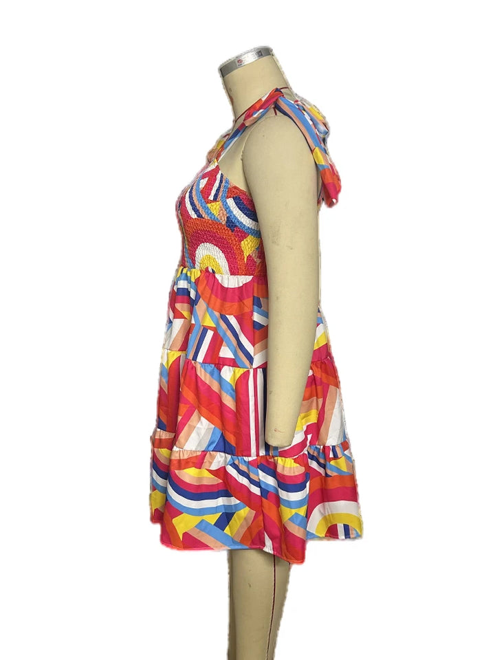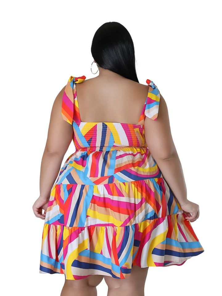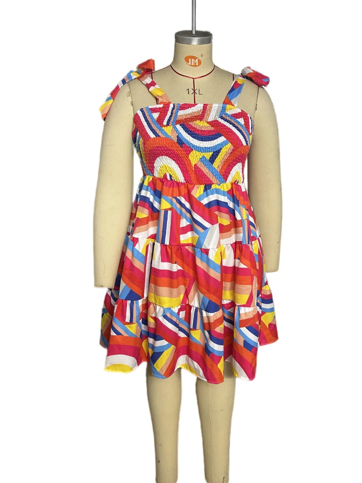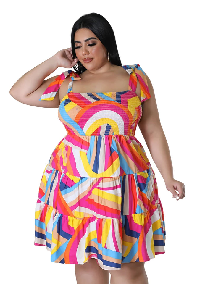 Plus Size Elastic Mini Dress Ladies Elegant Print Dress Spring Summer Ladies Neck Sleeveless Dresses Wholesale Dropshipping