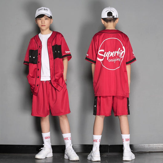Rave Clothing Hip Hop Dance Costume Boys Stage Costume Short Sleeve Festival Outfit Summer Street Dancewear Kids Jogger DL7901