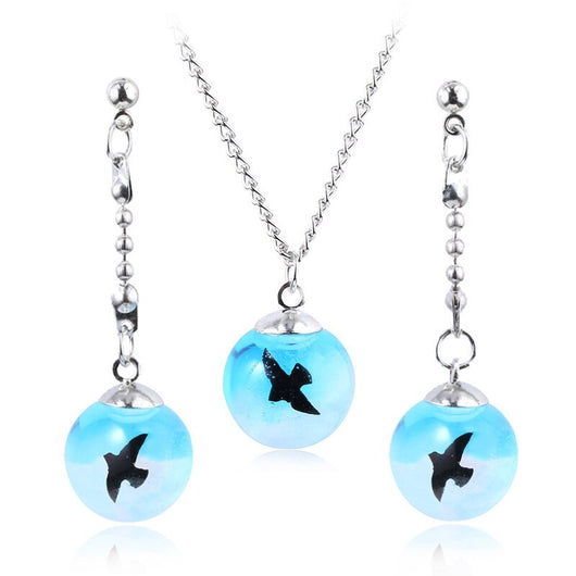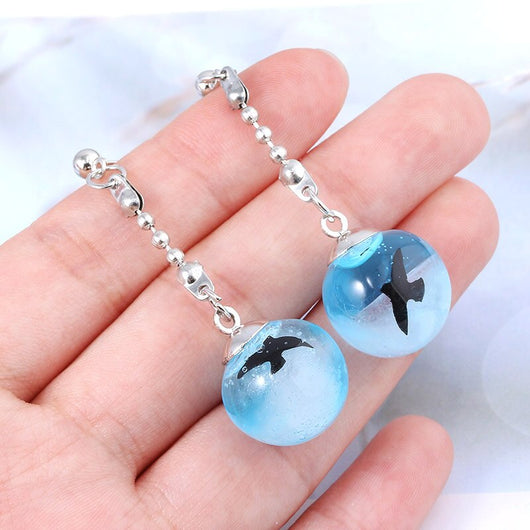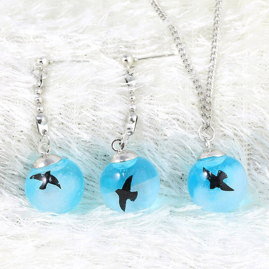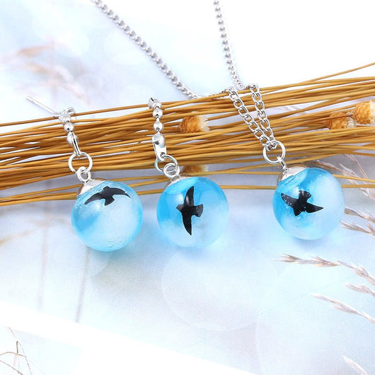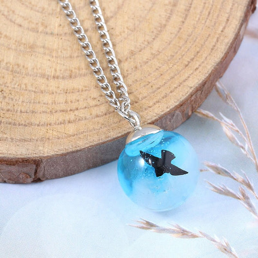 Sea Blue Sky Eagle Bird Necklace Creative Fashion Animal Pendant Transparent Spherical Resin Female Beach Travel Photo Gift