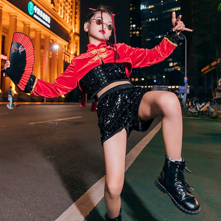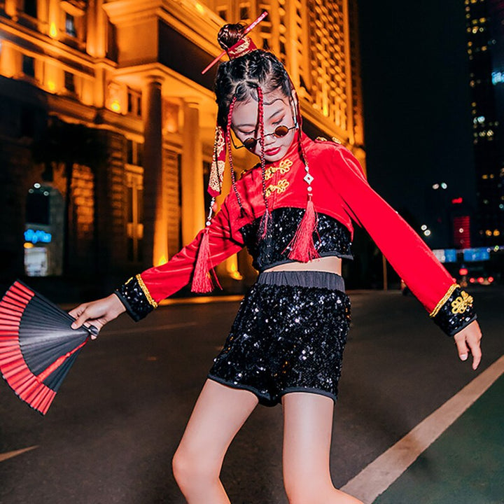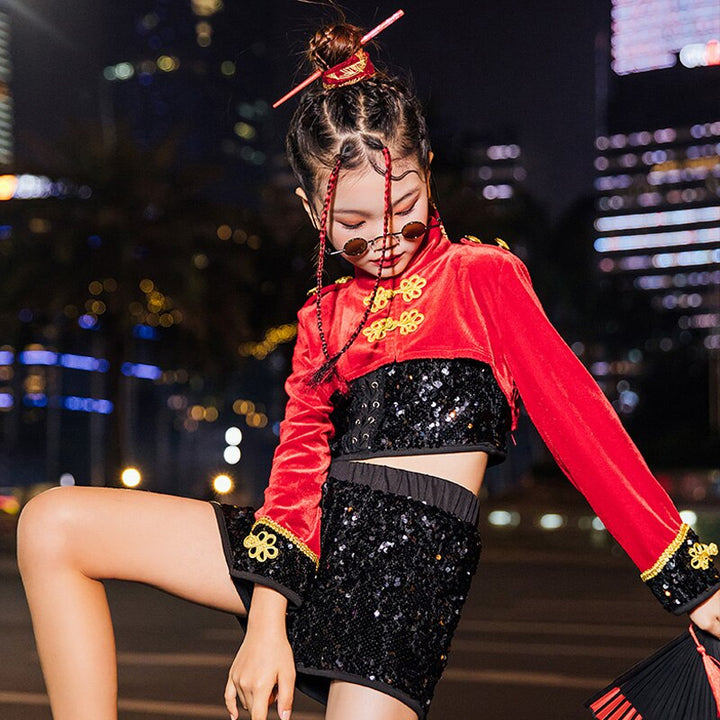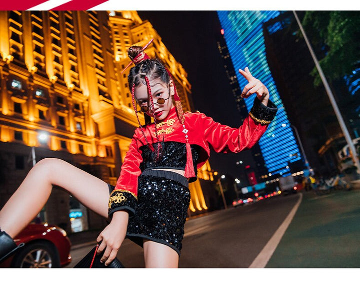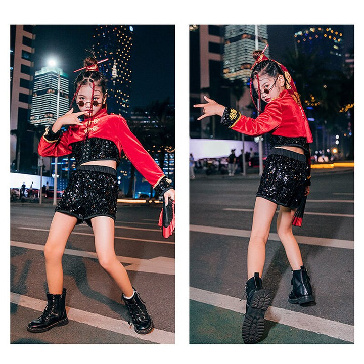 Sequins Girls Set Cheer Girl Costume Hip Hop Dance Wear Designer Clothes Stage Costume Dancer Outfit Festival Clothing DL7825