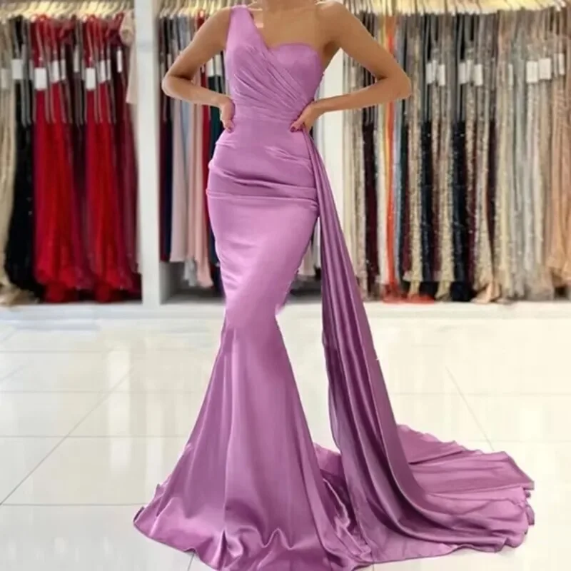 Sexy Feminino Single Shoulder Sleeveless Evening Dress Solid Clavicle Slim Party Vestidos New Elegant Zipper Prom Dress