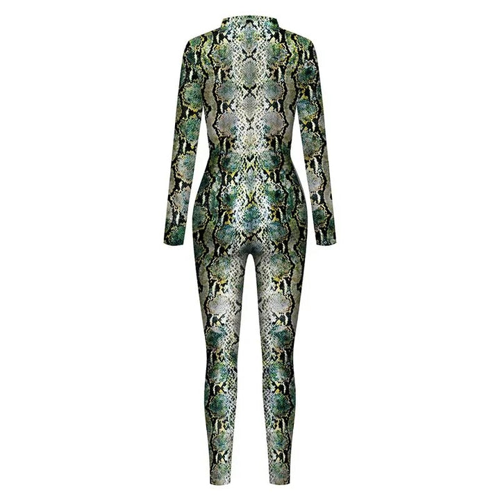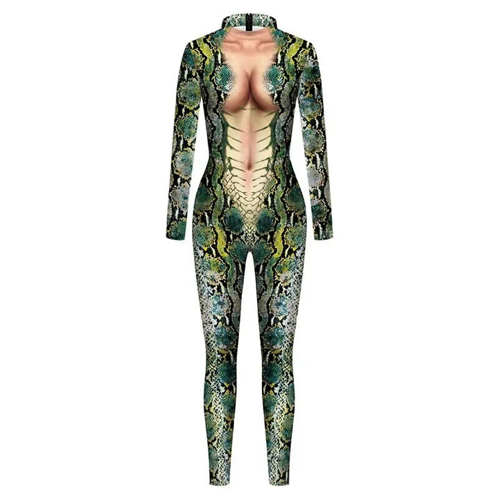 Sexy Snake Print Cosplay Costume Adult Suit Halloween Carnival Zentai Spandex Costume Women Bodysuit Jumpsuits
