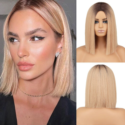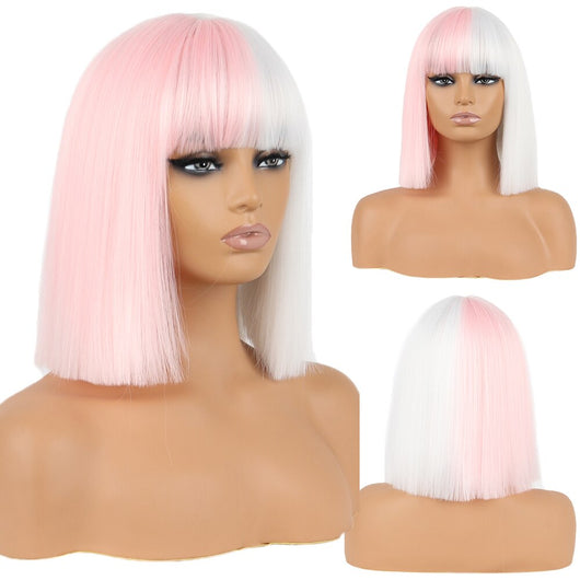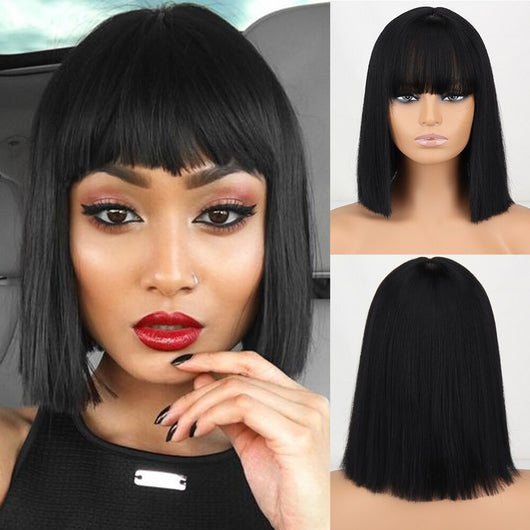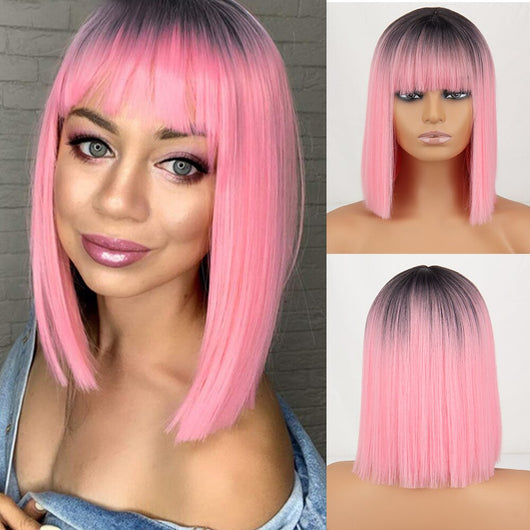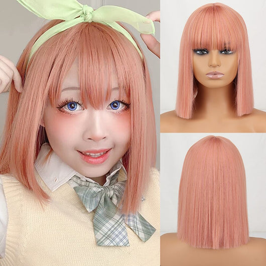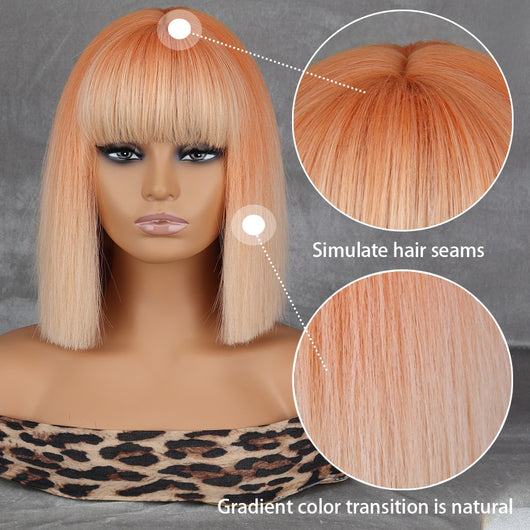 Short Orange Straight Bob Wig Synthetic Wigs For Women With Bangs Daily Cosplay Hair Heat Resistant