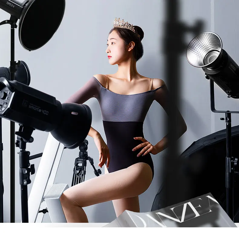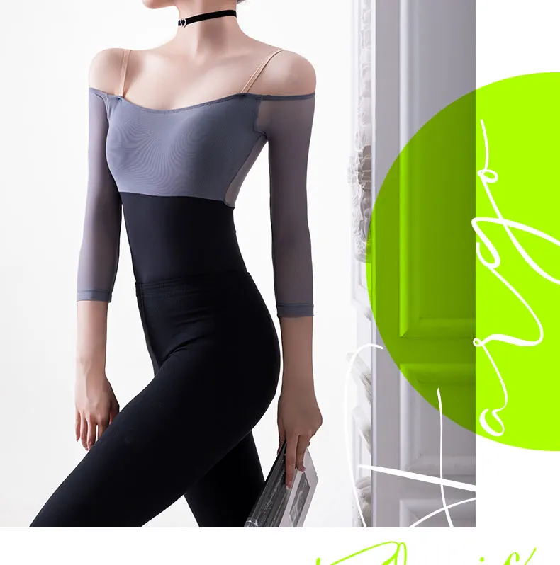 Slimming professional Korean-style sweet off-shoulder long-sleeved ballet-style dance practice yoga outfit for women
