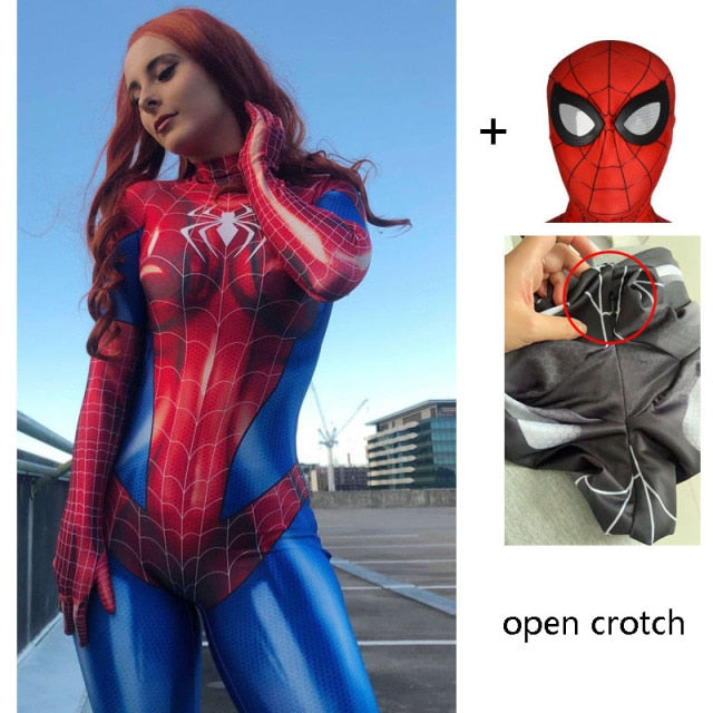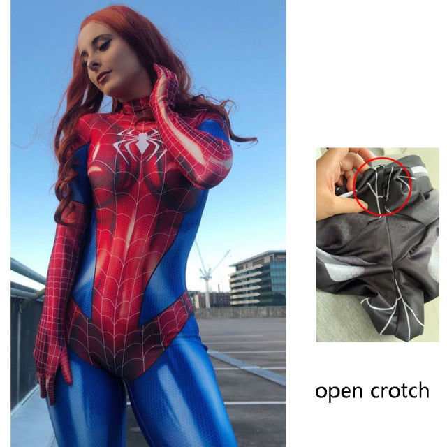 Spider Cosplay Sexy Zentai Suit Woman Jumpsuit Super Hero Zentai Costume Red Black Bodysuit Fancy Outfit Carnival Party Dress