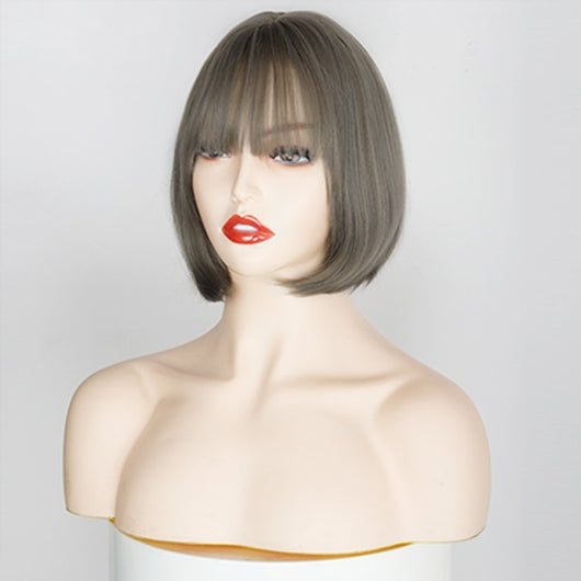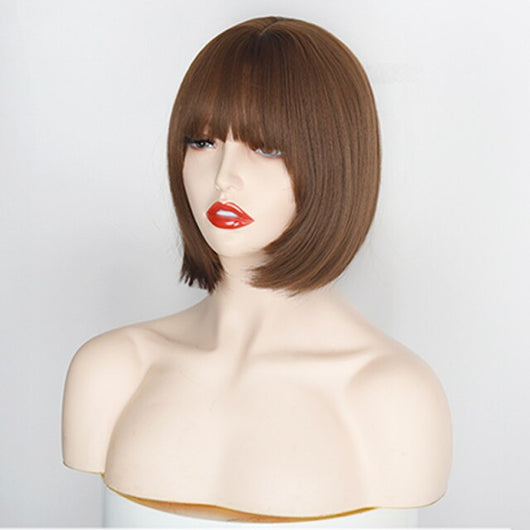 Straight Black Bob Wig With Bangs Synthetic Short Synthetic Wigs for Women Heat Resistant Fiber Hair Cosplay Brazilian Wigs