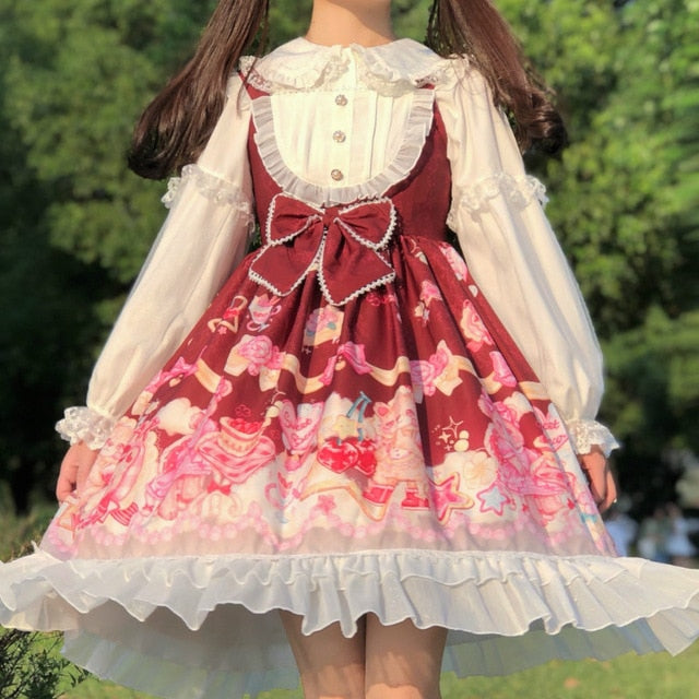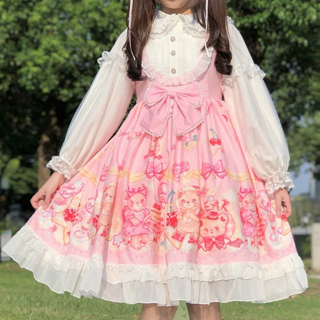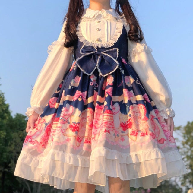 Sweet princess lolita dress bear strawberry cake print jsk suspender dress vintage Kawaii victorian dress gothic lolita loli