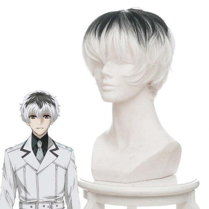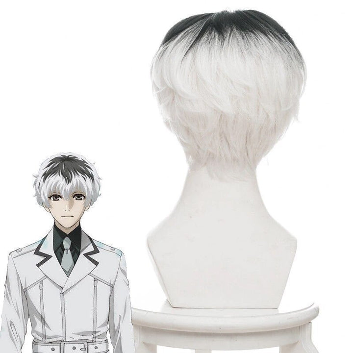 Tokyos cos Ghoulul Re Kanekiki Kenen Sasakiki Haisese Black White Mix Short Heat-resistant Fiber Hair Pelucasas Anime Cosplay Costume Wigs + Wig