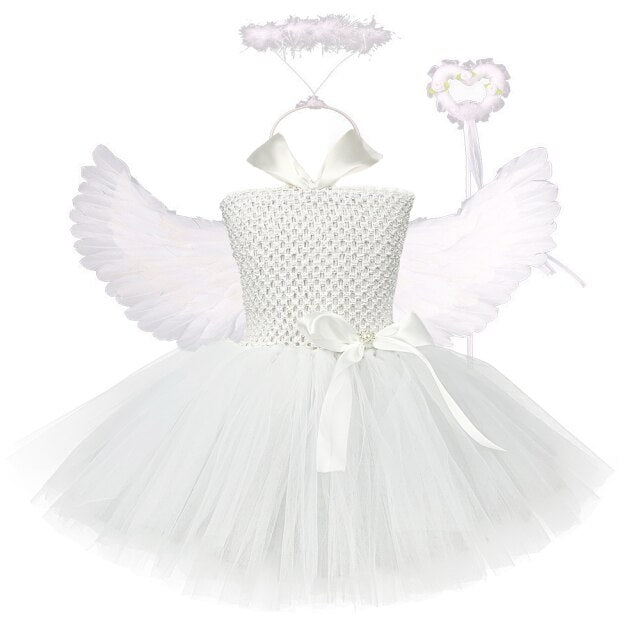 White Angel Tutu Costume for Girls Princess Fairy Cosplay Dress with Wings Halloween Costumes for Kids Girl Clothes Outfit 1-14Y
