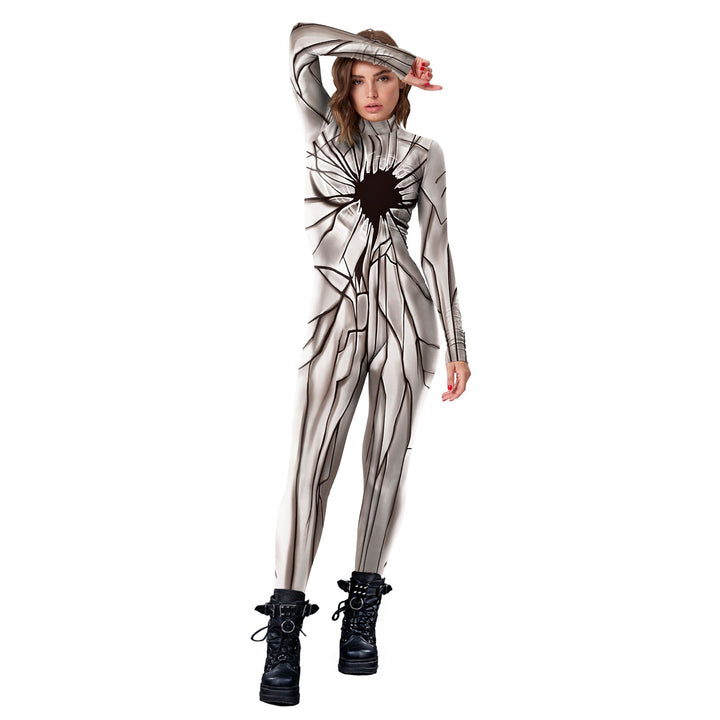 Women Cosplay Costume Zentai Bodysuit Broken Body 3D Print Jumpsuits Halloween Party Outfits Female Long Sleeve Clothes