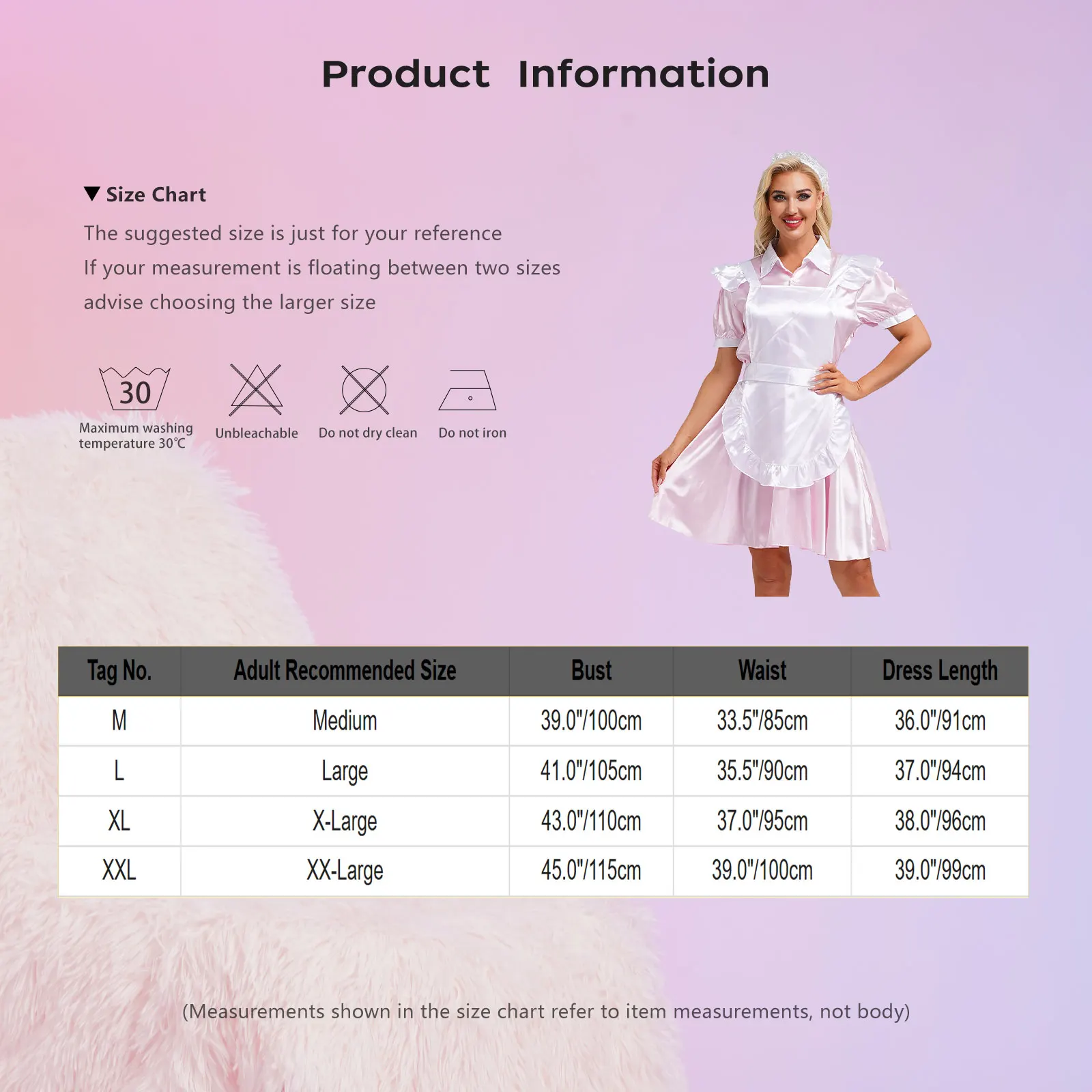 Womens French Maid Cosplay Costume Puff Sleeve Satin Dress with Apron Headband Maid Servant Dress Up Role Play Party Clubwear